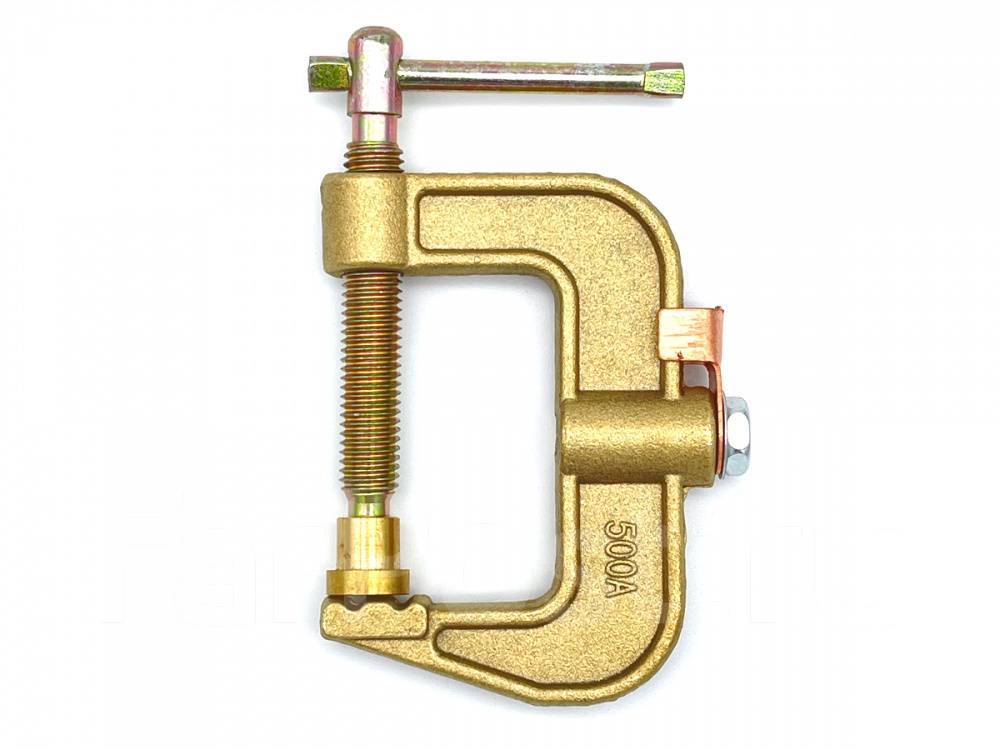 Винтовая клемма заземления KY1032 500 A, латунь, применяется для обеспечения разности потенциалов в рабочей зоне при токе до 500 А. Кроме того, ее можно использовать для обеспечения надежного и стабильного контакта в месте соединения сварочного кабеля с заземлением. После этого изделие обеспечивает максимальное прохождение тока к свариваемой конструкции. Приспособление необходимо при редкой смене заготовок с нагрузкой до 500 А.