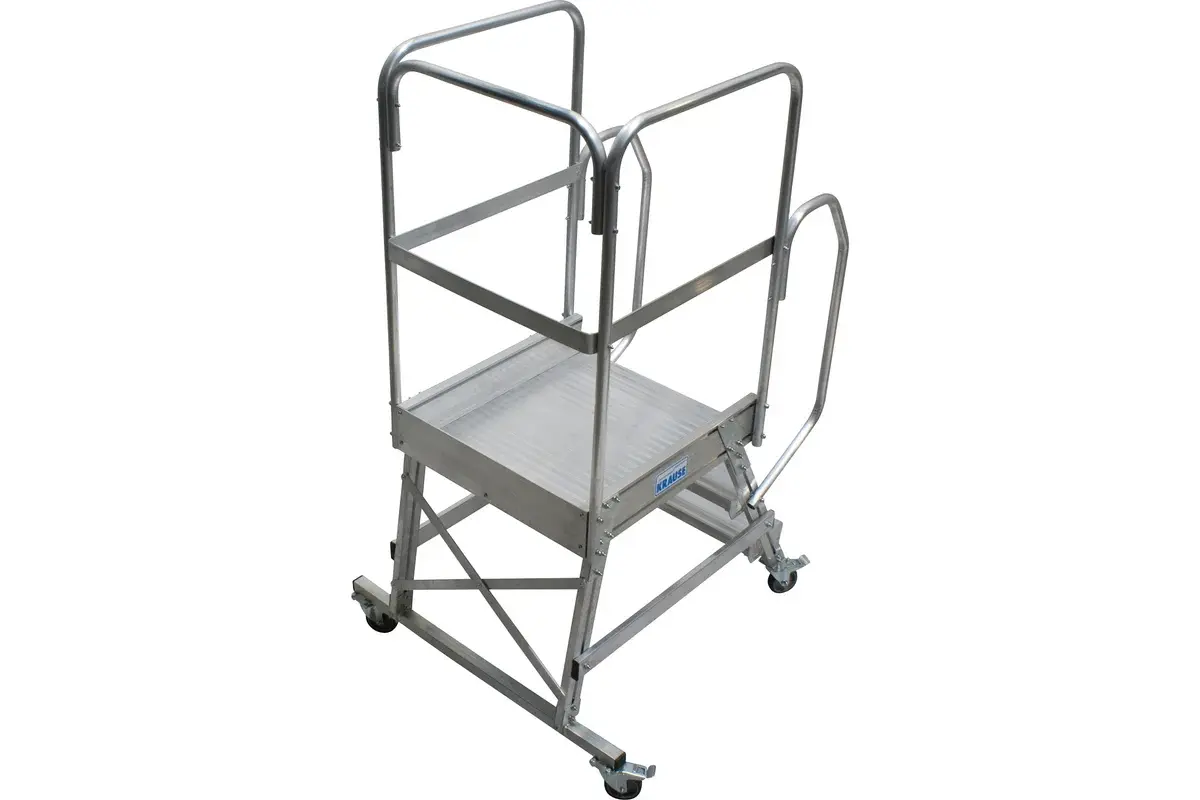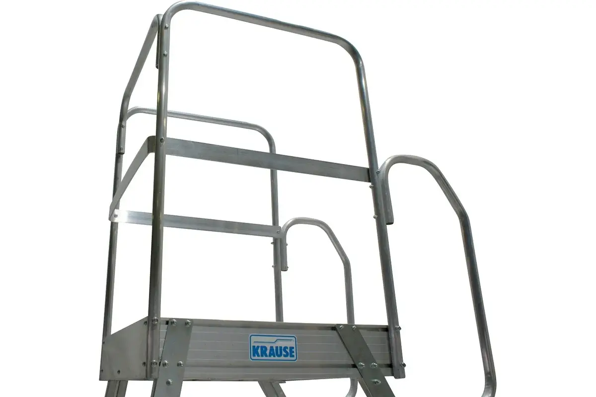 Односторонняя алюминиевая передвижная лестница с площадкой Krause Corda с 3-мя ступенями специально предназначена для работ на небольшой высоте. Она оборудована поворотными роликами с фиксаторами, для удобства перемещения. Для обеспечения безопасности предусмотрено ограждение, переходящее в перила.