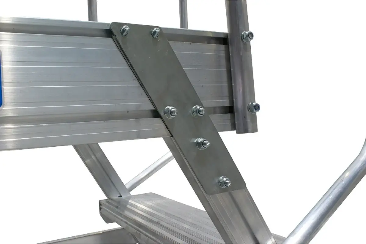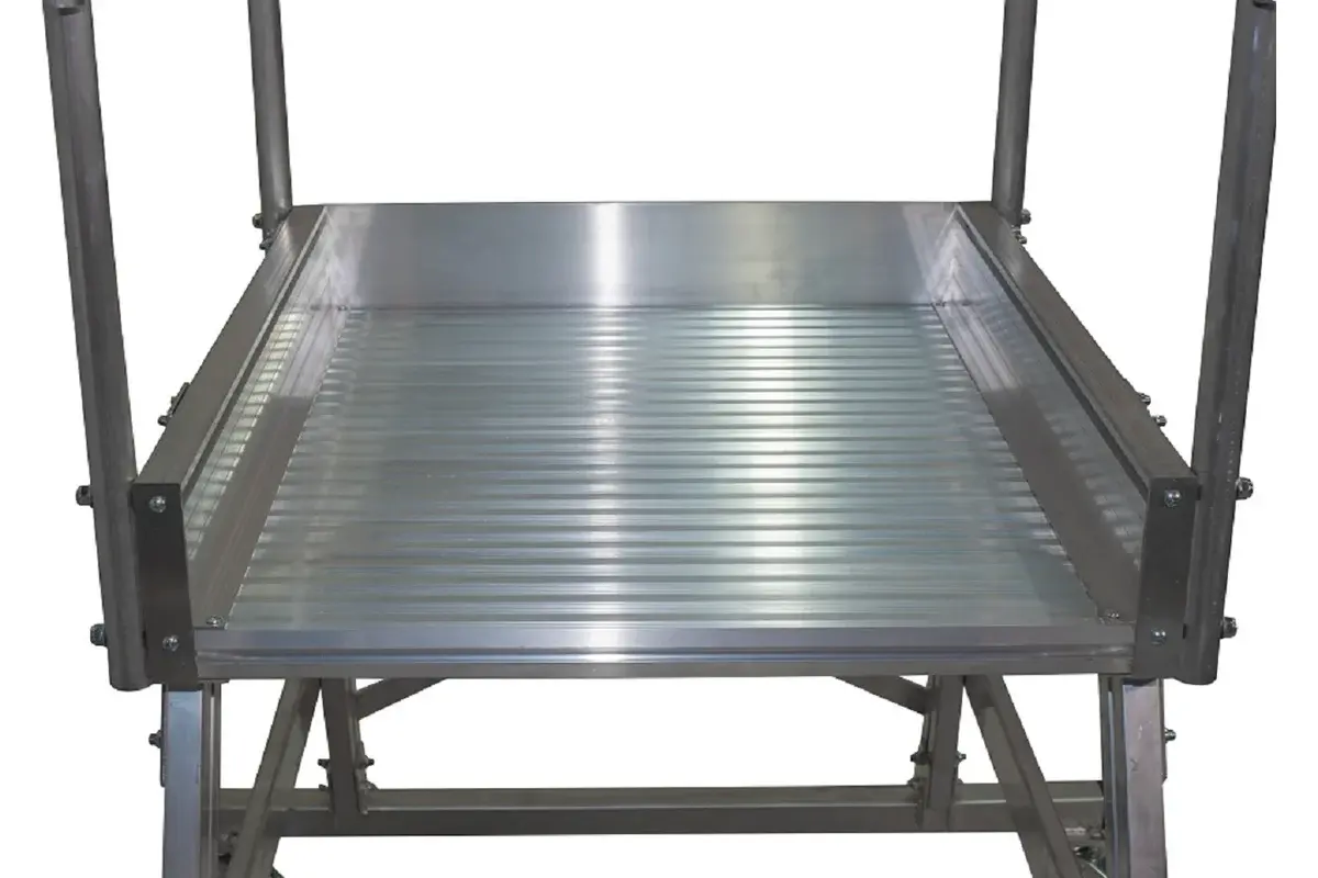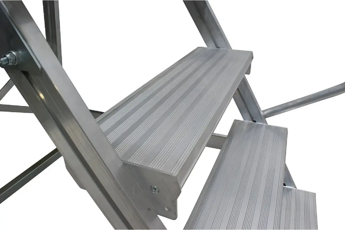 - Большая площадка размером 700х600 мм, и компактная конструкция делают лестницу удобной для использования на ограниченном пространстве.