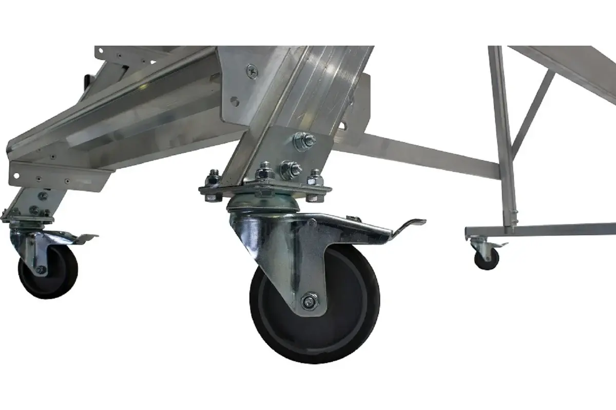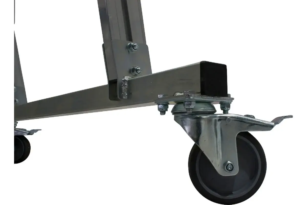 - 4 поворотных, оборудованных тормозами ролика с прорезиненным покрытием обеспечивают мягкость и плавность хода при перемещении.