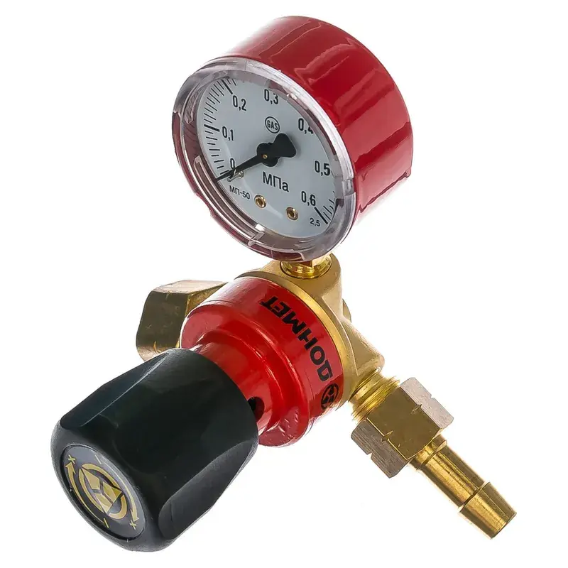 Редуктор Донмет БПО-5ДМ для пропана предназначен для регулирования, поддержания и формирования необходимого давления, поступающего из баллона во время сварочных работ. Наличие манометра обеспечивает контроль давления в камере рабочего давления. Подсоединяется к газовому баллону и сварочному рукаву для последующей подачи газа к сварочной горелке.