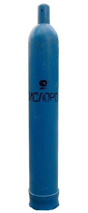 Баллон кислородный, 40 л, новый, предназначен для хранения и транспортировки кислорода. Баллон для кислорода окрашивается эмалью голубого цвета, надпись " КИСЛОРОД " черного цвета.