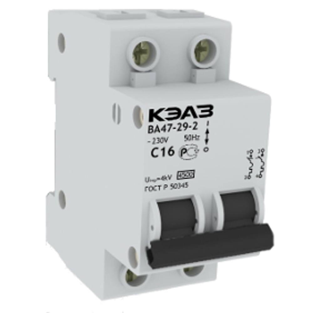 Модульный автоматический 2 полюсный выключатель переменного тока с предельной коммутационной способностью при переменном токе 4.5 кА на номинальный ток 40 А .